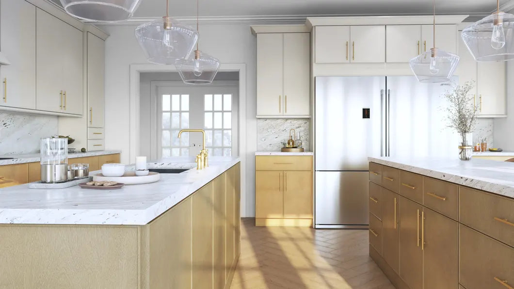 The Echo Collection brings timeless shaker styling with modern versatility. Available in 22 paint and stain finishes — from classic Frost white and warm Timber stain to bold Cabernet Red and Sage Green. All Echo cabinets feature all-wood construction and premium Blum soft-close hardware.