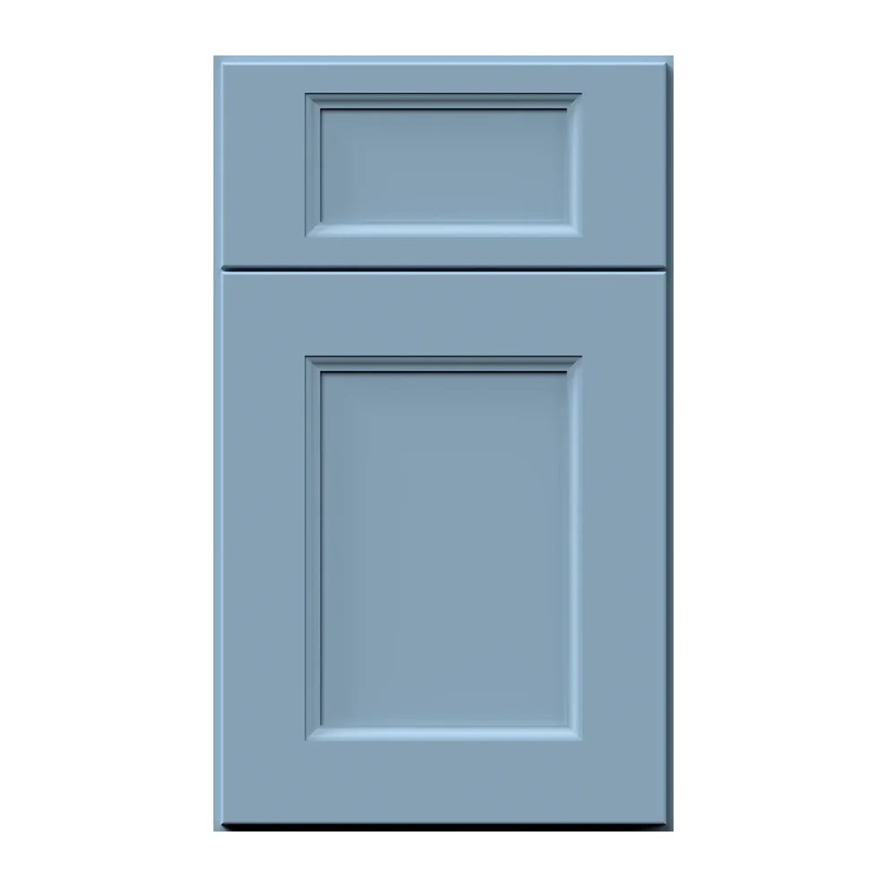 Blue recessed panel door sample from the Allure series Nexus collection of cabinets in ocean blue finish from Fabuwood Cabinetry Corp. Sample doors from Captivating Cabinets come in two convenient sizes: small and large. The small sizes let you easily line up multiple options, helping you envision different combinations for a perfectly coordinated kitchen. The large sizes showcase the actual door dimensions with a door and drawer front, giving you a true impression of the cabinet.