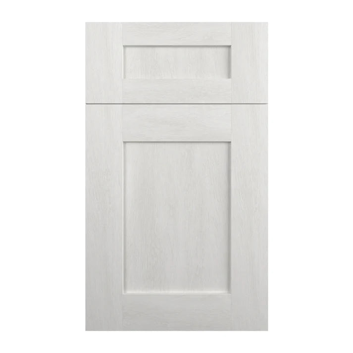 White shaker door sample from the Illume series Tuscany collection of cabinets in muratti 4 finish from Fabuwood Cabinetry Corp. Sample doors from Captivating Cabinets come in two convenient sizes: small and large. The small sizes let you easily line up multiple options, helping you envision different combinations for a perfectly coordinated kitchen. The large sizes showcase the actual door dimensions with a door and drawer front, giving you a true impression of the cabinet.
